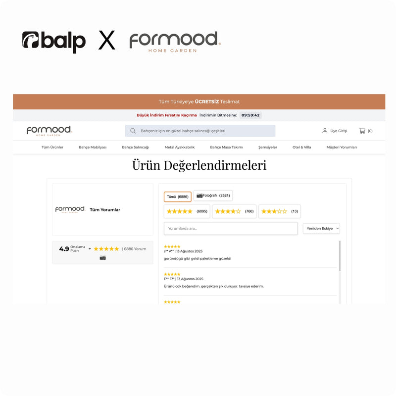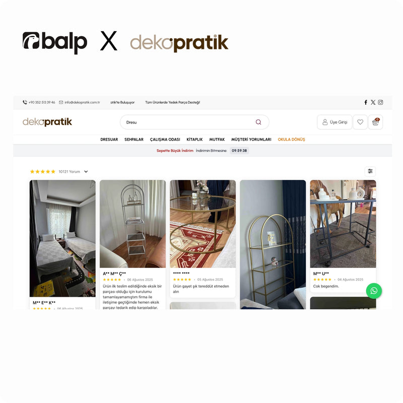 Gerçek müşteri yorumları, marka güvenilirliğini artırır, satın alma kararlarını hızlandırır ve dönüşüm oranınızı yükseltir. Pazaryerindeki başarınızı, kendi e-ticaret sitenize taşımanız için etkili bir yoldur.